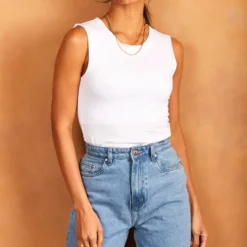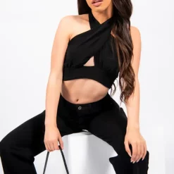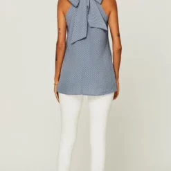 Best deal ⭐ FS Collection White Polka Dot Print Halter Neck Tie Back Top In Grey Blue 👍