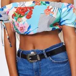 Deals 😀 The Fashion Bible Jana Blue Floral Bardot Crop Top 😉