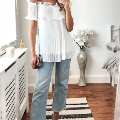 Coupon 🔔 KURT MULLER Ruffle Bardot Blouse In White 👍