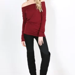 Best reviews of 🥰 Oops Fashion Jae Off Shoulder Long Sleeve Top In Wine Red 🧨