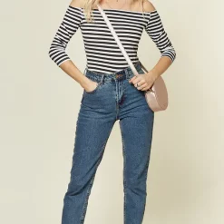Buy 😀 Want That Trend Maternity Maternity Bardot Top In Blue Stripe 🥰