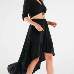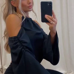 Cheap 🤩 Rag & Doll Hattie Black Off Shoulder Long Sleeve Handkerchief Top With Gold Necklace 🤩