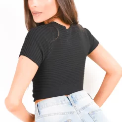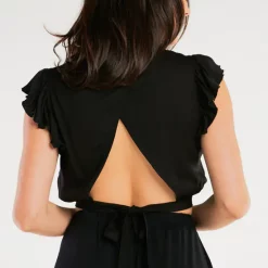 New 🤩 AWAMA Black Crop Top With Decorative Ties At The Back 🛒