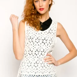 Wholesale 🥰 CY Boutique Sleeveless Crochet Vest Top In White 🧨