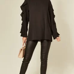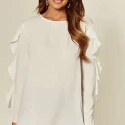 Best deal 🔔 HOXTON GAL Relaxed Fit Long Sleeves Ruffle Neck Top With Button Details In White 👏