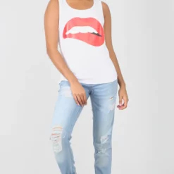 Coupon 🎁 Oops Fashion White Vest Top With Red Lips Graphic 🔥