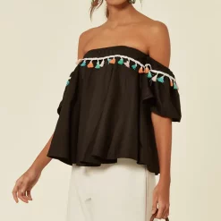 Top 10 👍 CY Boutique Off Shoulder ☀️ Summer Top In Black With Multi Colour Tassels ❤️