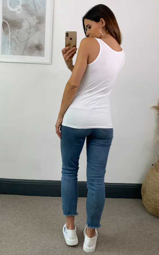 Aftershock London Logo Vest Top in White is a fitted vest top in soft cotton that features a round neckline and sleeveless design.