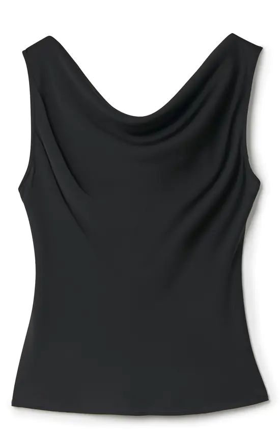 We give you our dreamy cowl neck sleeveless blouse, this top is the epitome of everyday luxury. The textured satin allows for the perfect drape neck. With a slim silhouette it is perfect top for layering this AW.