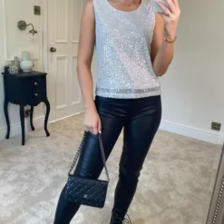 This stunning silver sequin top is the ultimate piece for party season! We love how this top catches the light, the perfect addition for a stand-out outfit.