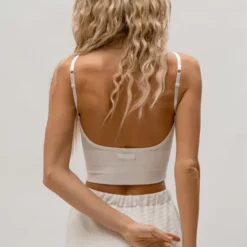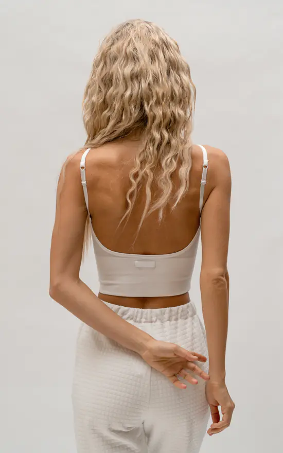 Our polar white scoop back crop is the perfect ribbed cami with adjustable straps enabling extra support, yet giving you that unique sexy look with its scooped back. Finished off with our signature ASTERIN outer label.