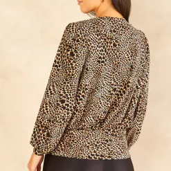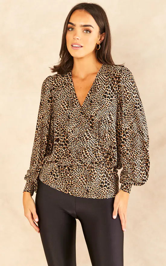 Combine two elements that are turning heads this season – wrap front and geo prints! Great for night outs and cocktails, this top can easily be styled with a wrap pencil skirt and spool booties.
