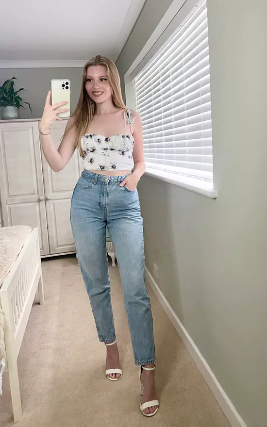 A crop top you need! Designed with its delicate hand tied straps, structured bodice which hugs your figure for that perfect fit. Whilst the ruched shaped cups add a softness complimenting the subtle hand drawn bespoke print. Style with your favourite denim jeans and delicate heel or layer it up with an over sized shacket and pair of boot heels.