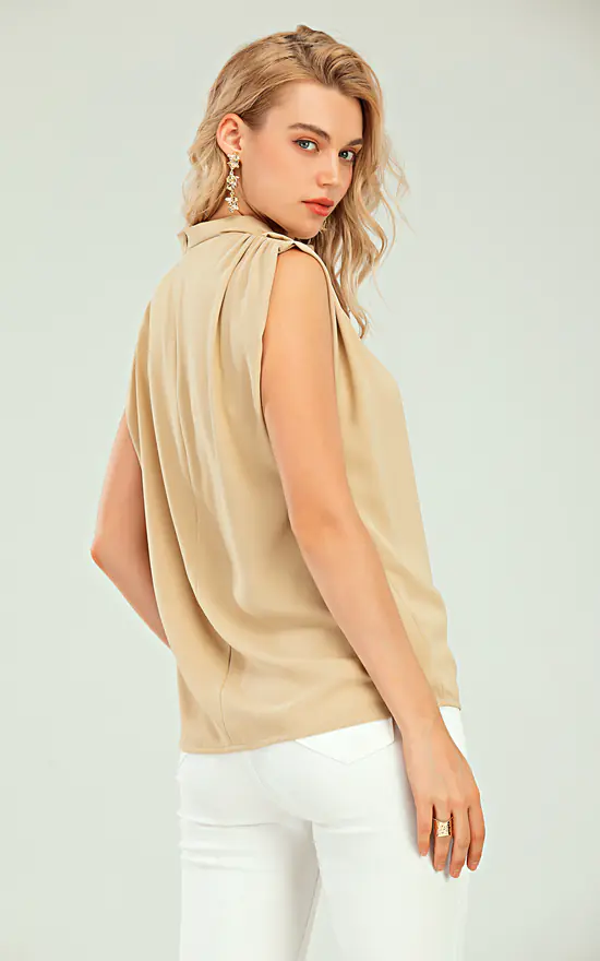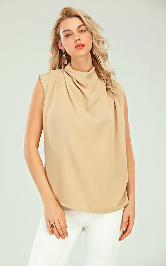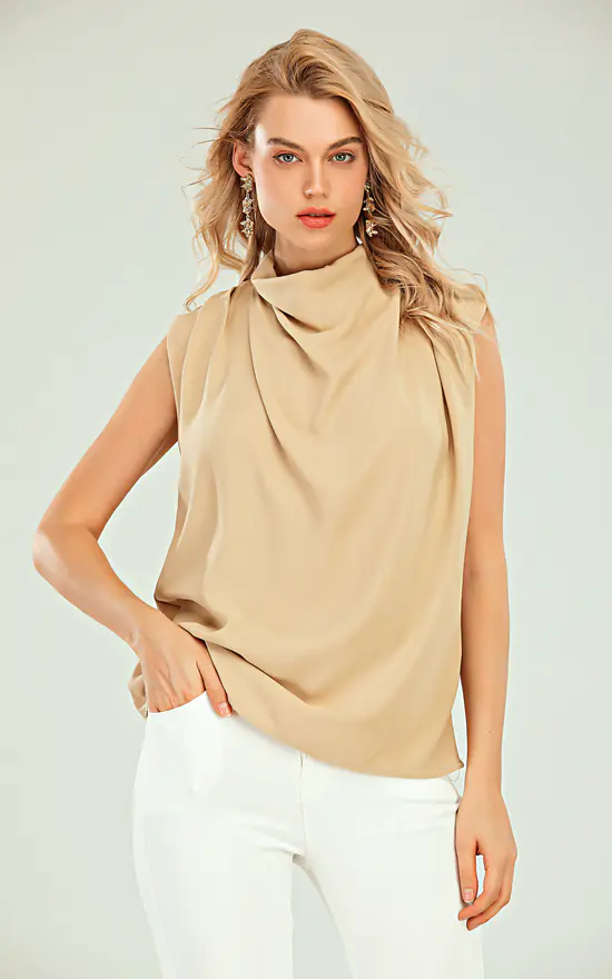 – Draped front neckline