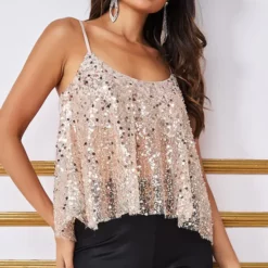 Got a night out planned and have no idea what to wear? Well fear not Goddiva are here to save the day with this see-through sequin cami top from their Naked collection. This glistening gold crop top is the perfect companion with leather look trousers or denim. With its sparkling sequin finish teamed with its adjustable spaghetti straps makes this top a perfect pick for cocktails with friends, club nights, birthday parties, dinner dates, christmas gatherings and New Years Eve events. Its cropped style is the perfect length with high waisted bottoms. In its classic champagne colour; you canβt go wrong with this number. Team with heels, a bold red lip and your hair up to get the full effect of this top.