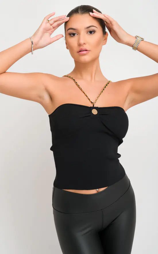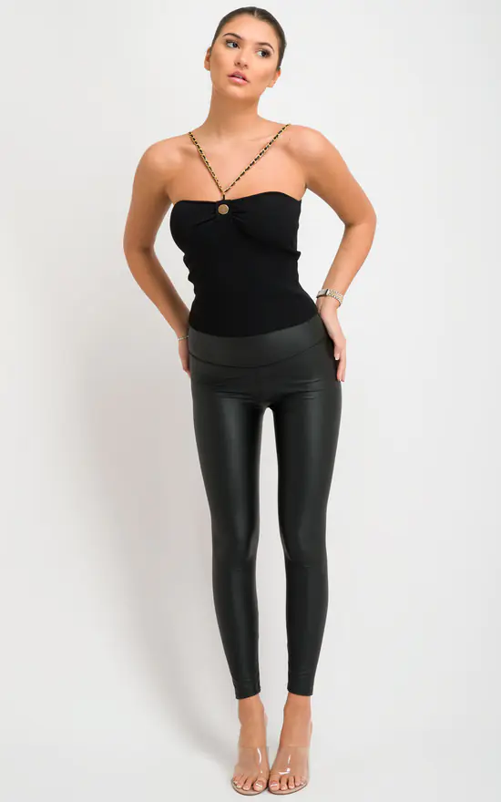 This Chain Strap Top will level up any outfit in your wardrobe. Pair with our Wet Look Leggings & heeled mules for a combo that’s perfect for dressing up or down!