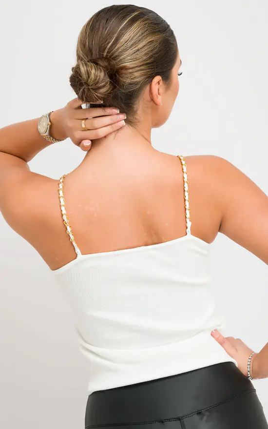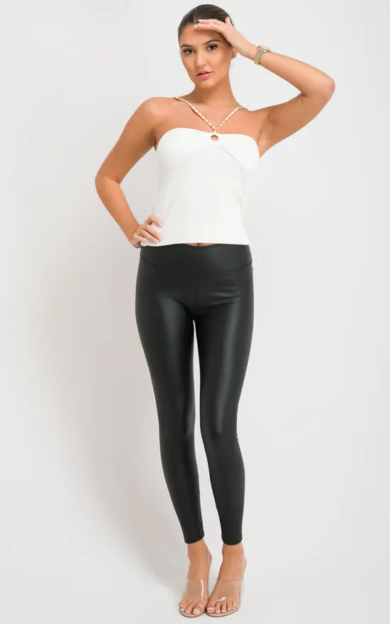 This Chain Strap Top will level up any outfit in your wardrobe. Pair with our Wet Look Leggings & heeled mules for a combo that’s perfect for dressing up or down!