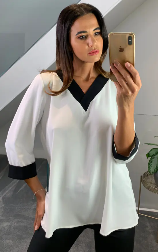 3/4 Sleeves Oversized V Neck Top in White and Black cosy and very atmospheric. You can go night parties, day trips, birthday parties and any gathering!