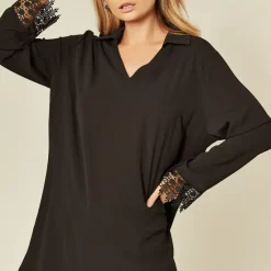 Black Oversized Top with Lace Detail