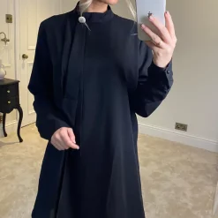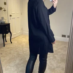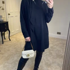 Oversized Brooch Detailed Long Sleeves Tunic Top in Black is the perfect addition to your wardrobe. It features a button details, long sleeves, and an oversized fit that is sure to turn heads!