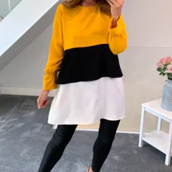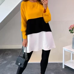 Oversized Colour Block Top in Yellow, Black and White with cute color transitions takes you out from monotone, regular look. You can feel very comfy with this piece in long days. It can be combined with jeans and basic shoes. A nice and simple necklace could be finishing touch on this combine.