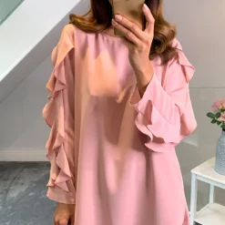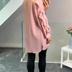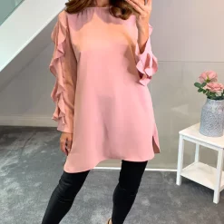 Oversized Ruffle Sleeves Relaxed Fit Tunic in Pink
