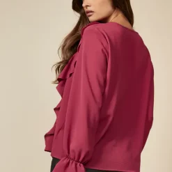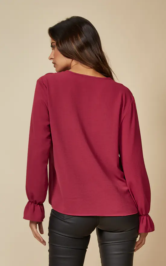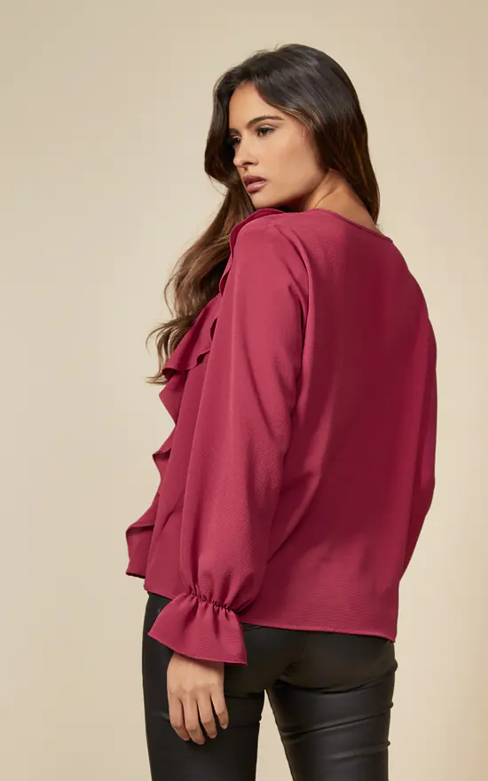 Oversized V Neck Top Ruffle Front Details in Burgundy is a must-have piece that can be combined in different ways. This is the ultimate go-to top in your wardrobe. This blouse is your savior for date nights, family gatherings, work, and going outs!