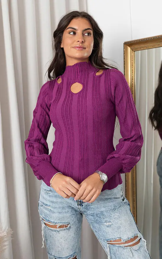 The ikrush/Evelyn Knitted Tops with Cut Out Detail is the perfect top for any occasion! Made from a soft and comfortable material, it is perfect for everyday wear. The cut outs detail gives it a stylish edge, while the fitted design ensures you look great no matter what you pair it with!