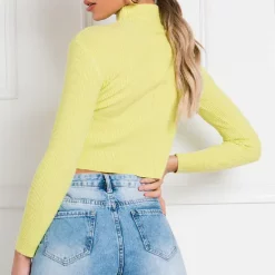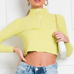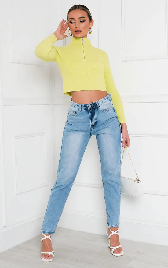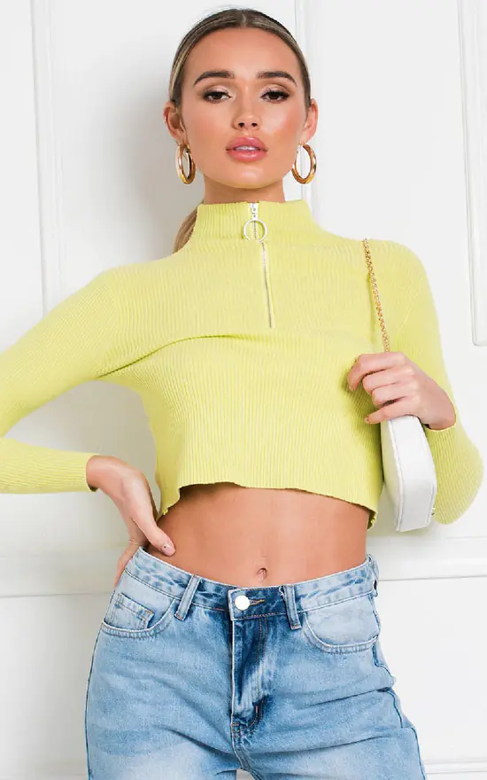 We are obsessed with ROLLO! It is a cropped style long sleeved ribbed top with a high neck and silver zip detailing! Wear with skinny jeans and heels for a lush casual look! get the look gal.