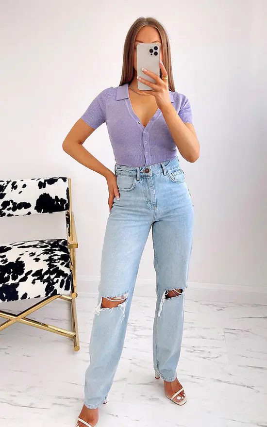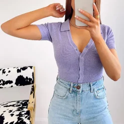 Our TERRI bodysuit is Spring Outfit Goals! This bodysuit has super soft knit materials, button up front, short sleeves with collar!