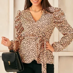 -Long sleeve, wrap, blouse, top, winter, autumn, occasion, polka dot print, geometrical print