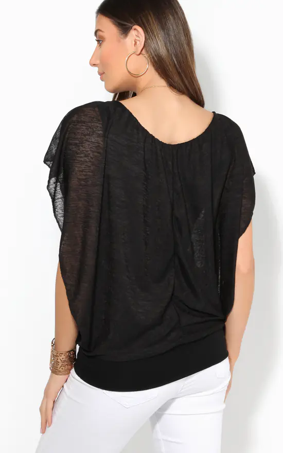 Gorgeous chiffon cape style top, with cotton vest support and elasticated ruched hemline. Perfect casual wear essential (Pendant necklace included)