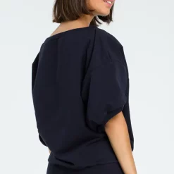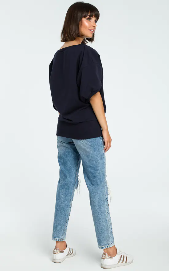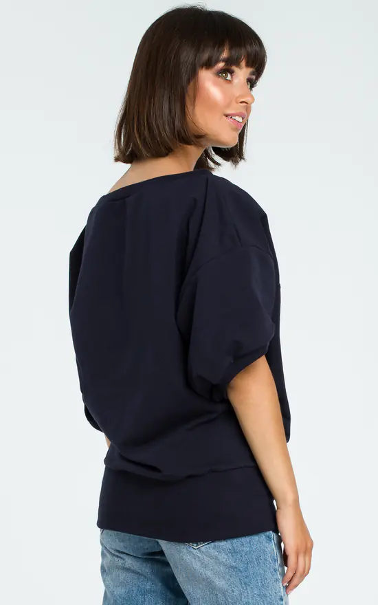 Wrap up in this textured knit fabric oversized blouse with front wrapped panel whenever you need something soft and cosy. Perfect for every day any season.