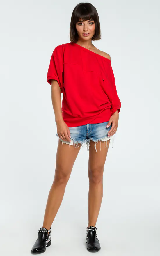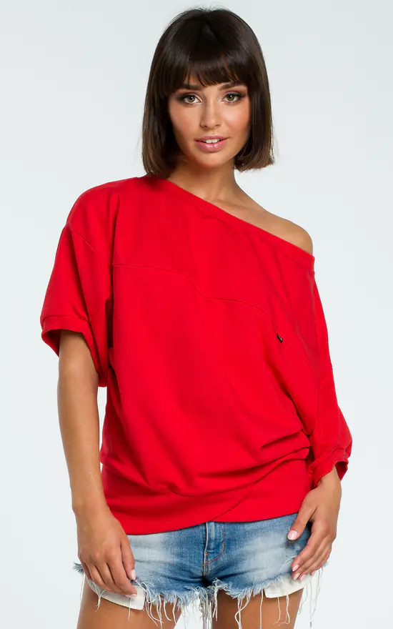 Wrap up in this textured knit fabric oversized blouse with front wrapped panel whenever you need something soft and cosy. Perfect for every day any season.