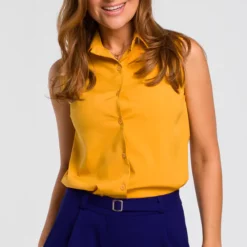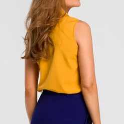 An essential plain blouse cut in soft silky fabric featuring a sleeveless cut tailored for a
