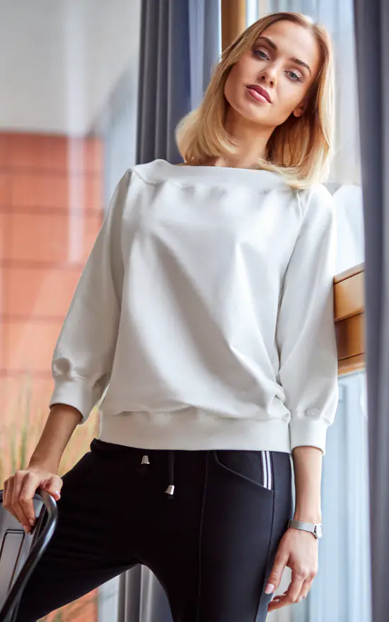 hat if you donβt have to sacrifice style for cosiness? Thanks to super soft cotton knit this long puff sleeve sweatshirt with a flattering wide neckline which you can drop off your shoulder is both comfortable and stylish.