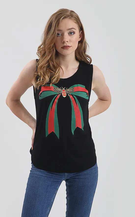 Izzie Graphic Print Curved Hem Vest Top featuring a gucci inspired design and loose fit. Team with Jeans and box fresh kicks for chilled vibes