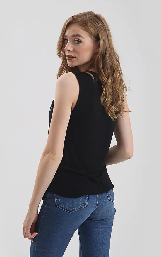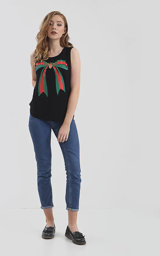 Product Code: 7043-BOW CURVED HEM VEST TOP BLK/