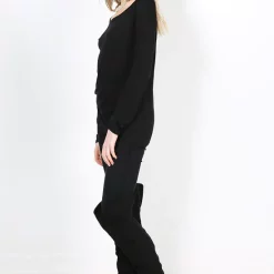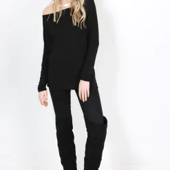 Product Code: 3257-OFFSHLDR LNGSLV BAGY TOP BLK/