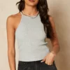 Look effortless in this basic White vest top, featuring a deep scoop neckline and marl effect, Keep it casual in our Featuring an on trend super comfy vest top, style with skinny gym for workout energetic vibes.