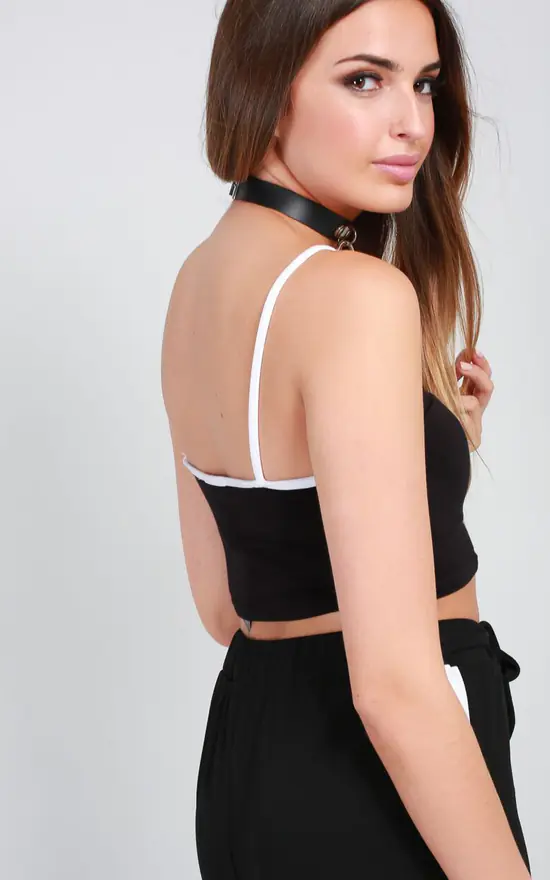 Up your basics with this cami crop top, featuring a jersey fabric and contrasting straps. Team with the matching cigarette trousers and fresh kicks to finish the look.