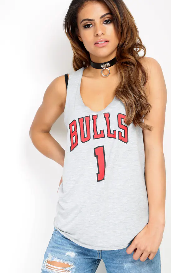 Up you casuals collection in this Grey Raw Edge Bulls Slogan Print Vest Top. Featuring a sporty graphic print and baggy fit. Team with denim shorts and sliders for casj vibes