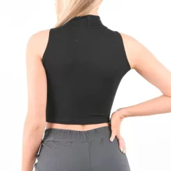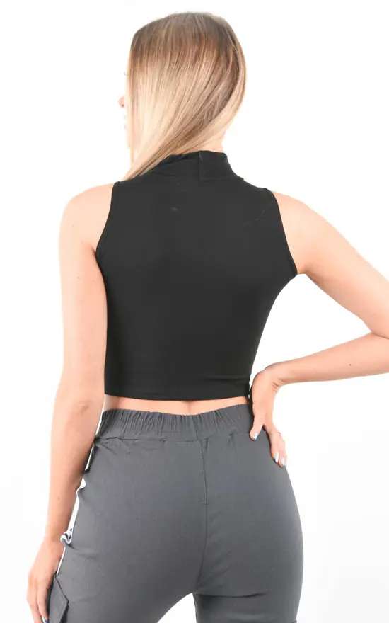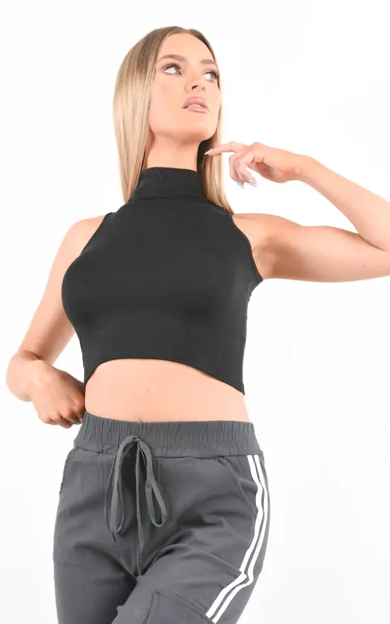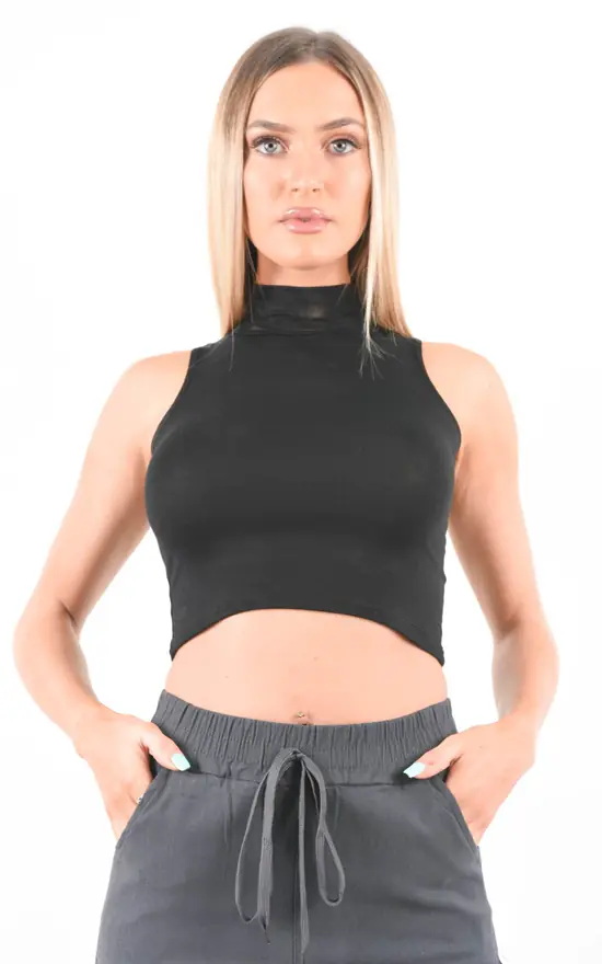 Our Black High Neck Sleeveless Crop Top is part of our latest Basics collection. Featuring a black cotton stretch fabric, a high neckline and sleeveless style finished in a cropped length.