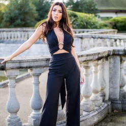 A gorgeous multiway sleeveless halter neck top paired with the Gabby flared trousers are an absolute must have. The top can be tied in a bow or worn with our gunmetal ring for a completely different look. Personally we love the ring, wrap yourself in and you will look fabulous!