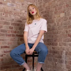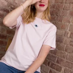 Baby Pink Embroidered Wake Up World Organic T-shirt.