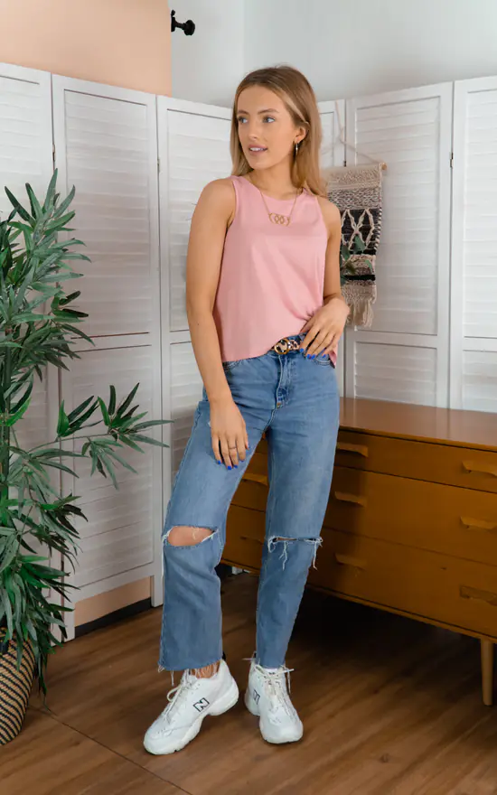 This pink slouch vest is perfect for adding a bit of colour into your wardrobe. The basic relaxed fit allows you to style it to fit any look – a great summer staple!