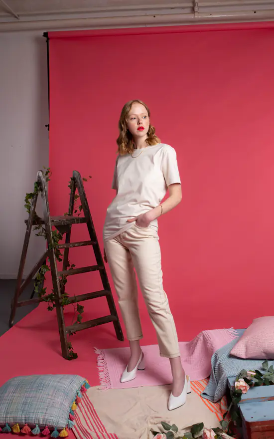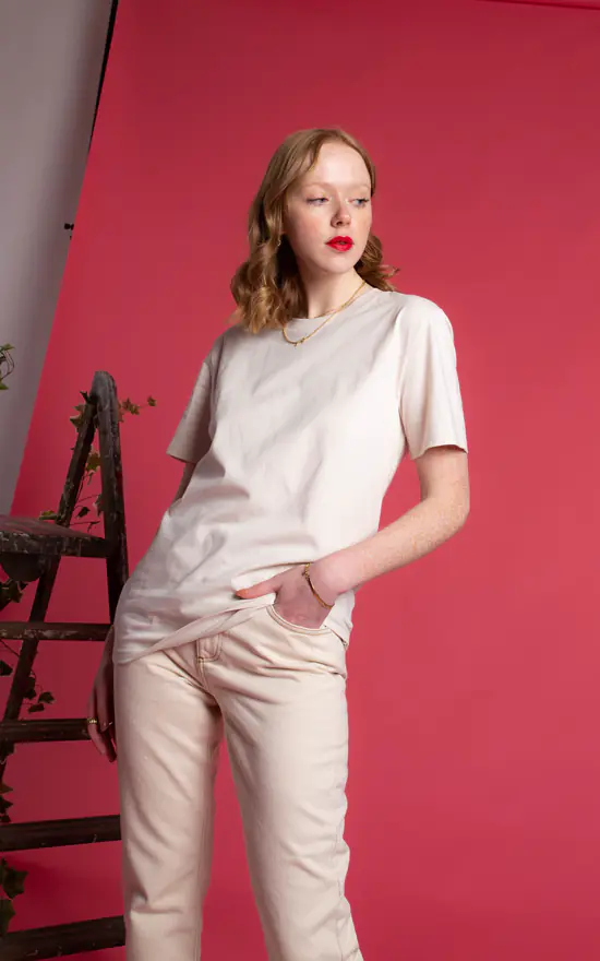 This plain, off white tee is the perfect staple basic for any wardrobe. A basic t-shirt can be dressed up or down for any occasion or style.