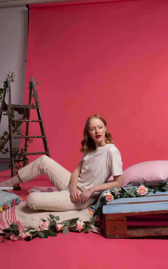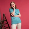 This top has a relaxed, oversized fit as it is a unisex style. Holly is a size 8 and wears the small.