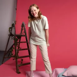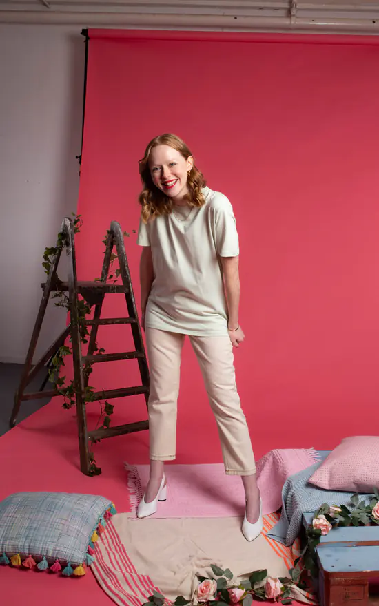 Our tees have a relaxed, oversized fit as they are unisex style tops. Holly is a size 8 and wears the small.
