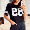 The black floral cotton crop top is made from a bespoke digital floral print jersey. Blue and grey hues sit on a dark base. Fastened with a beautiful bow tie at the back for the ultimate versatility and elegant fit. The perfect co-ord with the cotton jersey leggings or pair with denim shorts. A favourite to be worn underneath any signature shirt from the collection.